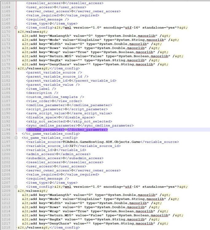 I believe i got something .. it gives the following error once i try to import the config: Unknown column 'docker_parameter' in 'field list' Does docker has to be installed in windows server ?? because i dont have it installed as i think its not required for tcadmin Thx