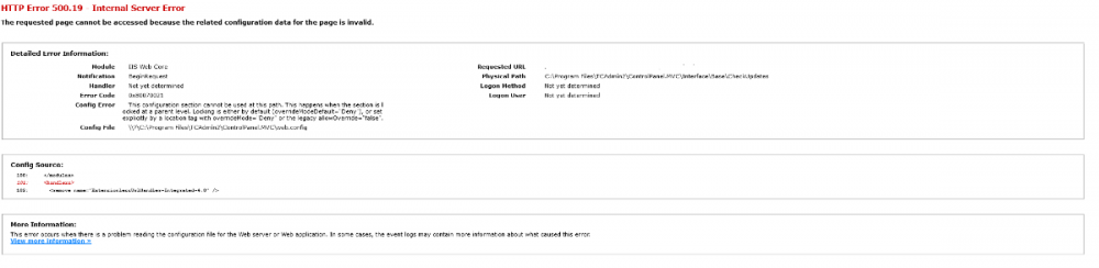 I just tested this update and the theme main page loops inside every page (Image Attached). Plus, the panel works for 2 mins then when reload it shows an error (Image Attached) then after few reloads it works again with the image loop again. Windows 2019 Thx